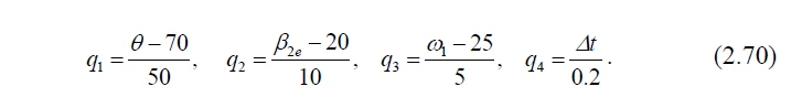 Thus, informal macromodelling as IGCP were taken:θ, β2e , ω1, Δt relatively in ranges 20…120, 10…30, 20…30, –0.2…0.2. In normalized form in the range of –1…1 the factors are calculated as follows: