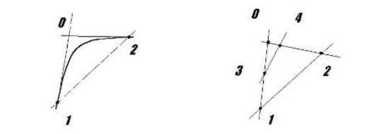 The simplest base curve satisfying the above requirements, a Bezier curve, based on the polygon consisting of two segments passing through the given points with a given slope (Fig. 5.2). It is not difficult to assume that the use of the support polygon of the two segments gives BC, having a very large maximum curvature. In addition, when the angle between segments tends to be zero, the maximum curvature increases indefinitely.