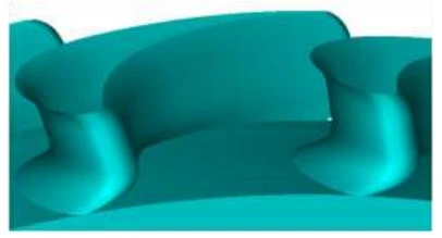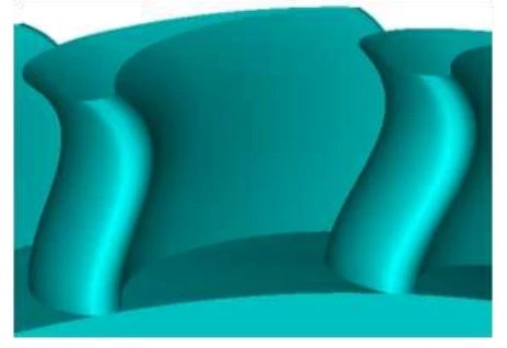 Turbine cascade, received as the result of the optimization, is shown at Fig. 6.29. Losses in the new cascade made up 5.314% that on 0.145% in absolute value or on 2.69% in relative value is smaller than in the initial variant.