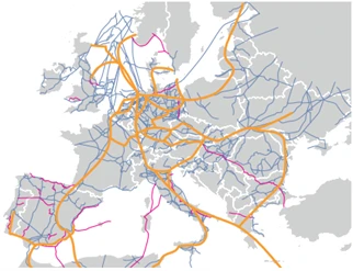 European Transnational Hydrogen Backbone – The natural gas infrastructure in Europe (blue and red lines) and an outline for a hydrogen backbone infrastructure (orange lines). The main part of the hydrogen backbone infrastructure consists of re-used natural gas transport pipelines with new compressors. A ‘’new’’ hydrogen transport pipeline must be created from Italy to Greece and from Greece to the Black Sea, and the southern coast of the Iberian peninsula would need a new hydrogen transportation line. Source: Green Hydrogen for a European Green Deal A 2×40 GW Initiative Prof. Dr. Ad van Wijk Jorgo Chatzimarkakis Hydrogen Europe Avenue de la Toison d’Or 56-60 BE-1060 Brussels +32 (0) 2 540 87 75 www.hydrogeneurope.eu