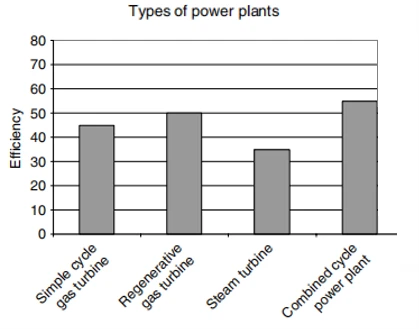 Figure 2, above, shows the efficiency of the power plant depending on the type of cycle. The power plants referenced are: the simple cycle gas turbine (SCGT) plants with firing temperatures of 2400°F (1315°C); recuperative gas turbine (RGT) plants, where the exhaust gases from the turbine are used to heat the incoming air to the combustion chamber; the steam turbine plants; the CCPPs; and the advanced combined cycle power plants (ACCPs), such as CCPPs using advanced gas turbine cycles.Cogeneration power plants are designed to generate both electrical power and heat for use in a process application. A typical cogeneration plant uses the waste gases from the gas turbine to produce steam in a HRSG or a waste heat boiler (WHB); these terms are often used interchangeably in various chemical processes. The steam could be used directly in an absorption chiller to produce refrigerated air, or in a steam turbine to drive a cooling system or to produce more power. Water is heated to provide hot water for all types of usage.