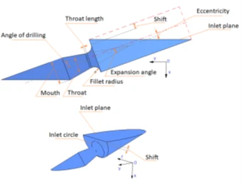 Figure 4 Example of a drilled nozzle (geometric parameters of the drilled nozzle)