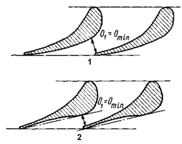Depending on the parameters at which a turbine will operate, various types of nozzles can be used. In particular, at lower Mach numbers (1.4 or less) (Figure 2 (1)) it is possible to use nozzle arrays with converging channels. At higher Mach numbers, it is necessary to use channels formed by Laval type nozzles (Figure 2 (2)), the shape of which matches the geometry of the nozzle blades.